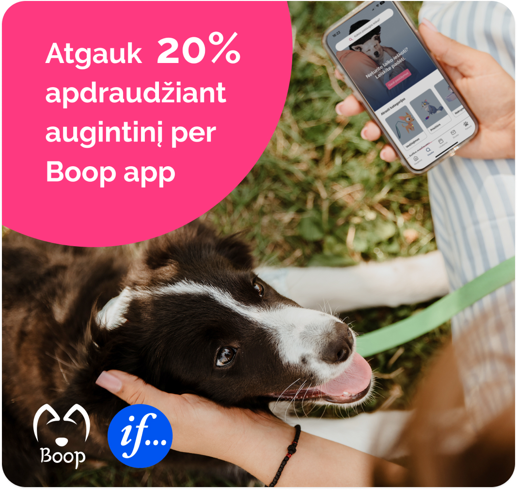 Susigrąžink net 20 % nuo „If augintinis“ metinio draudimo sumos! Šią sumą galėsi panaudoti „Boop“ augintinių priežiūros paslaugoms.